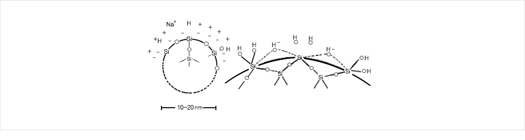 The particles in colloidal silica are stable above the pH 8 that is to be seen right fig. Most of SS-SOL
